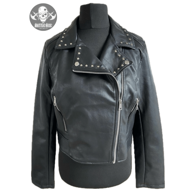 The jacket is made of faux leather and 100% vegan friendly.